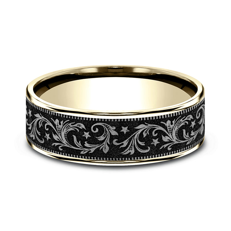 Benchmark® Golden Midnight Scroll Titanium Band